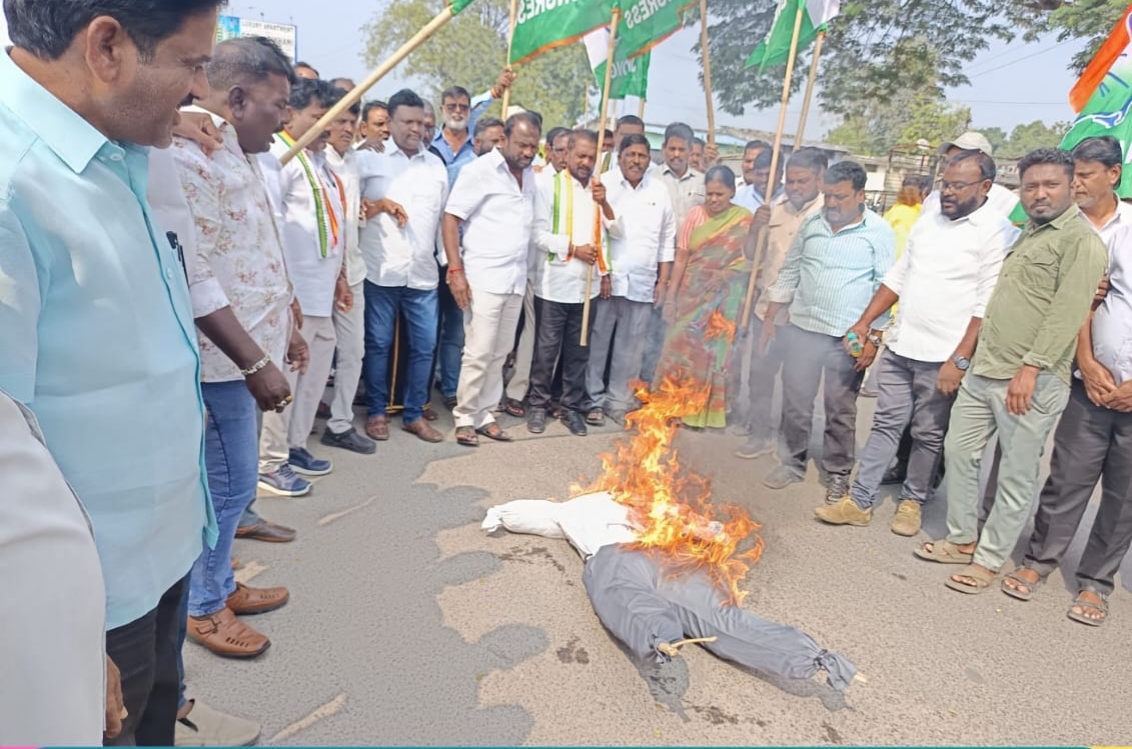 ఖనిలో హరీష్ రావు దిష్టిబొమ్మ దహనం