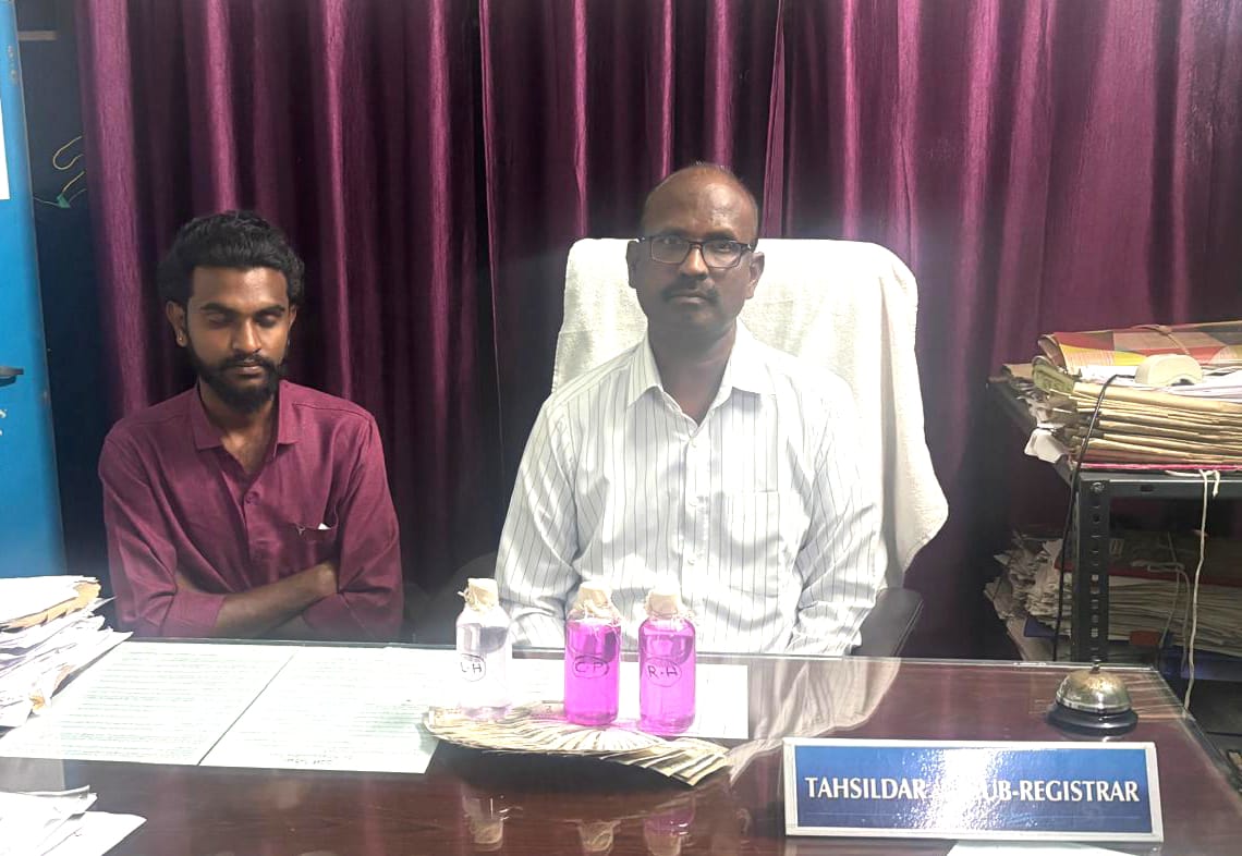నవంబర్ 28: మహబూబాబాద్ జిల్లాలోని పెద్ద వంగర మండల తహశీల్దారు, జాయింట్ సబ్ రిజిస్ట్రార్ వీరగంటి మహేంద్ర, ఫిర్యాదుధారురాలి భర్తకు మామ వారసత్వ వ్యవసాయ భూమి రిజిస్ట్రేషన్ ప్రక్రియలో అనుకూలంగా ప్రాసెస్ చేయించడానికి ఫిర్యాదుధారురాల నుండి రూ.15,000/- లంచం డిమాండ్ చేసిన సందర్భంలో, తన ప్రైవేట్ డ్రైవర్ తుప్పాని గౌతమ్ ద్వారా తీసుకుంటుండగా తెలంగాణ అనిశా అధికారులకు పట్టుబడ్డారు.