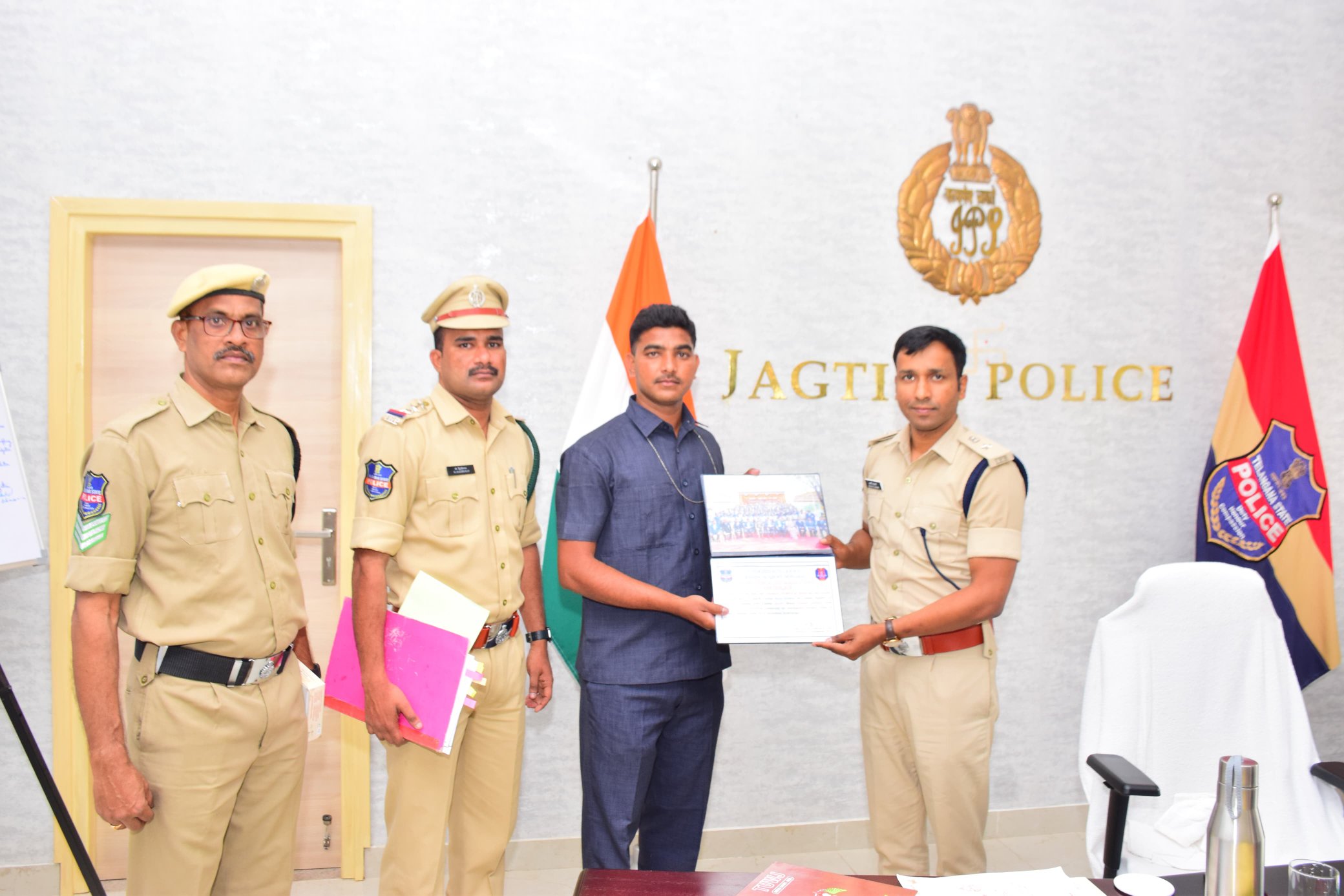 నేరాల ఛేదనలో పోలీస్ జాగిలాల పాత్ర ఎంతో కీలకమైనది. పోలీస్ శాఖకు చెందిన “రాఖీ” అనే నూతన పోలీస్ జాగిలం IITA మొయినాబాద్లో ఎనిమిది నెలలపాటు ప్రత్యేక శిక్షణను విజయవంతంగా పూర్తి చేసి ఇటీవల జిల్లాకు చేరుకుంది. ఈ సందర్భంగా జిల్లా పోలీస్ ప్రధాన కార్యాలయంలో నిర్వహించిన కార్యక్రమంలో డాగ్ హ్యాండ్లర్ రమేష్కు శిక్షణ పూర్తి చేసినందుకు సర్టిఫికెట్ అందజేసి అభినందించారు.