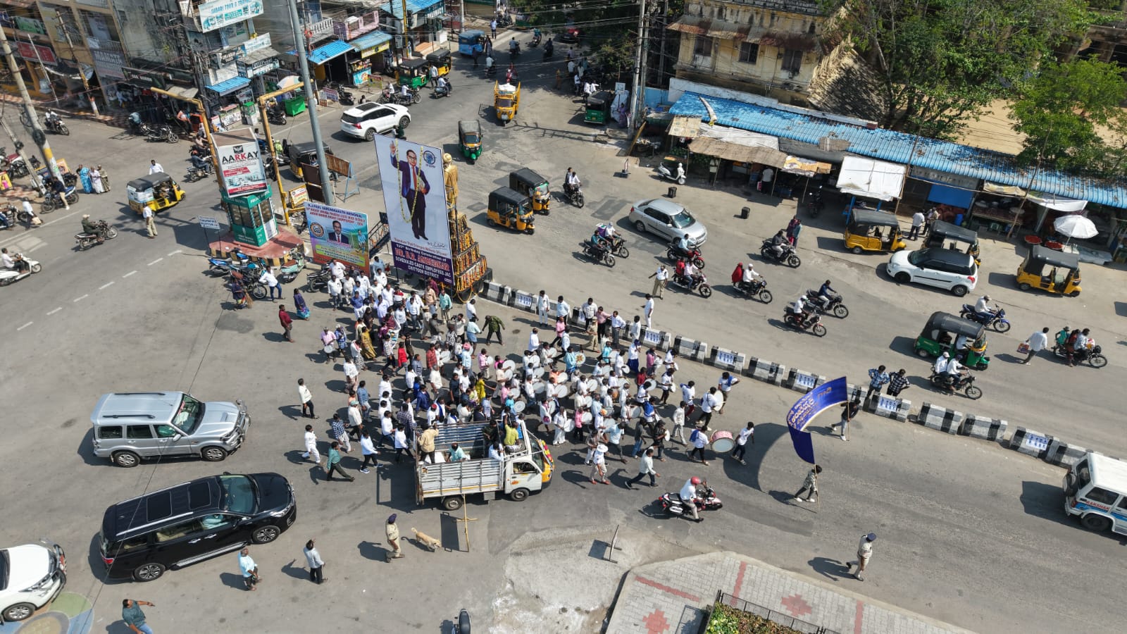 డ్రోన్ కెమెరాల ద్వారా ప్రధాన కూడళ్లు, ర్యాలీ మార్గాలు, జనసమ్మర్దం ఎక్కువగా ఉండే ప్రాంతాలను నిరంతరం పరిశీలిస్తూ ట్రాఫిక్ మరియు భద్రతా పరిస్థితులను సమన్వయం చేశారు. దీంతో కార్యక్రమం శాంతియుతంగా, ఎటువంటి అంతరాయం లేకుండా సజావుగా కొనసాగింది.