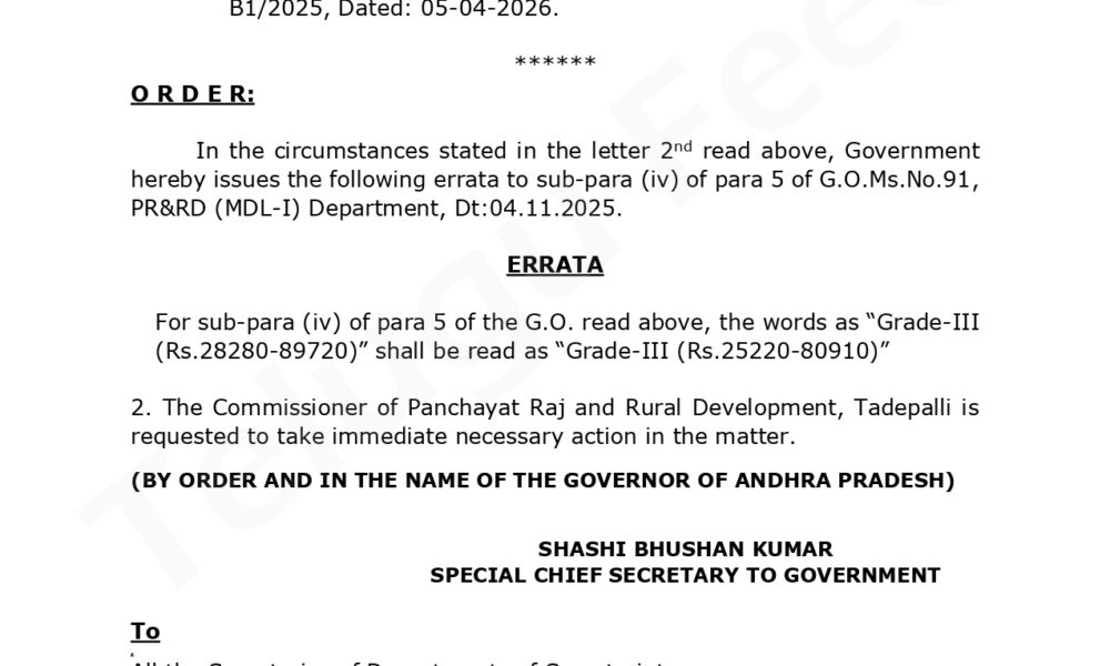 రాష్ట్రంలో పంచాయతీ కార్యదర్శుల పేస్కేల్ తగ్గింపు అంశం తీవ్ర చర్చనీయాంశంగా మారింది. N. Chandrababu Naidu ప్రభుత్వం తీసుకున్న తాజా నిర్ణయం ప్రకారం పేస్కేల్ను రూ.28,280 నుండి రూ.25,220కు తగ్గించినట్లు సమాచారం. గతంలో జీవో 91 ద్వారా గ్రేడ్ 5 నుంచి గ్రేడ్ 3గా అప్గ్రేడ్ చేసి జీతాలను పెంచగా, ఇప్పుడు జీవో 60 ద్వారా సవరించి తగ్గించడం వివాదానికి దారితీసింది.