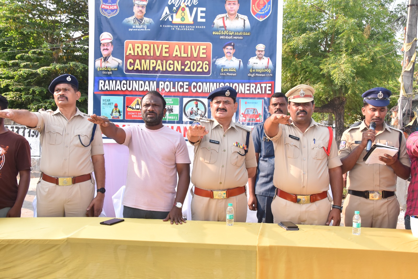 రామగుండం పోలీస్ కమిషనరేట్ పరిధిలో గోదావరిఖని వన్టౌన్ పోలీస్ స్టేషన్ ఆధ్వర్యంలో ఇందిరానగర్లో “అరైవ్ లైవ్” కార్యక్రమం నిర్వహించారు. పట్టణంలో పెరుగుతున్న రోడ్డు ప్రమాదాలను దృష్టిలో ఉంచుకుని ప్రజల్లో అవగాహన కల్పించేందుకు ఈ కార్యక్రమం చేపట్టారు. ఈ కార్యక్రమానికి పెద్దపల్లి డీసీపీ బి. రామ్ రెడ్డి, రామగుండం మేయర్ మహంకాళి స్వామి, గోదావరిఖని ఏసీపీ ఎం. రమేష్ ముఖ్య అతిథులుగా హాజరయ్యారు.