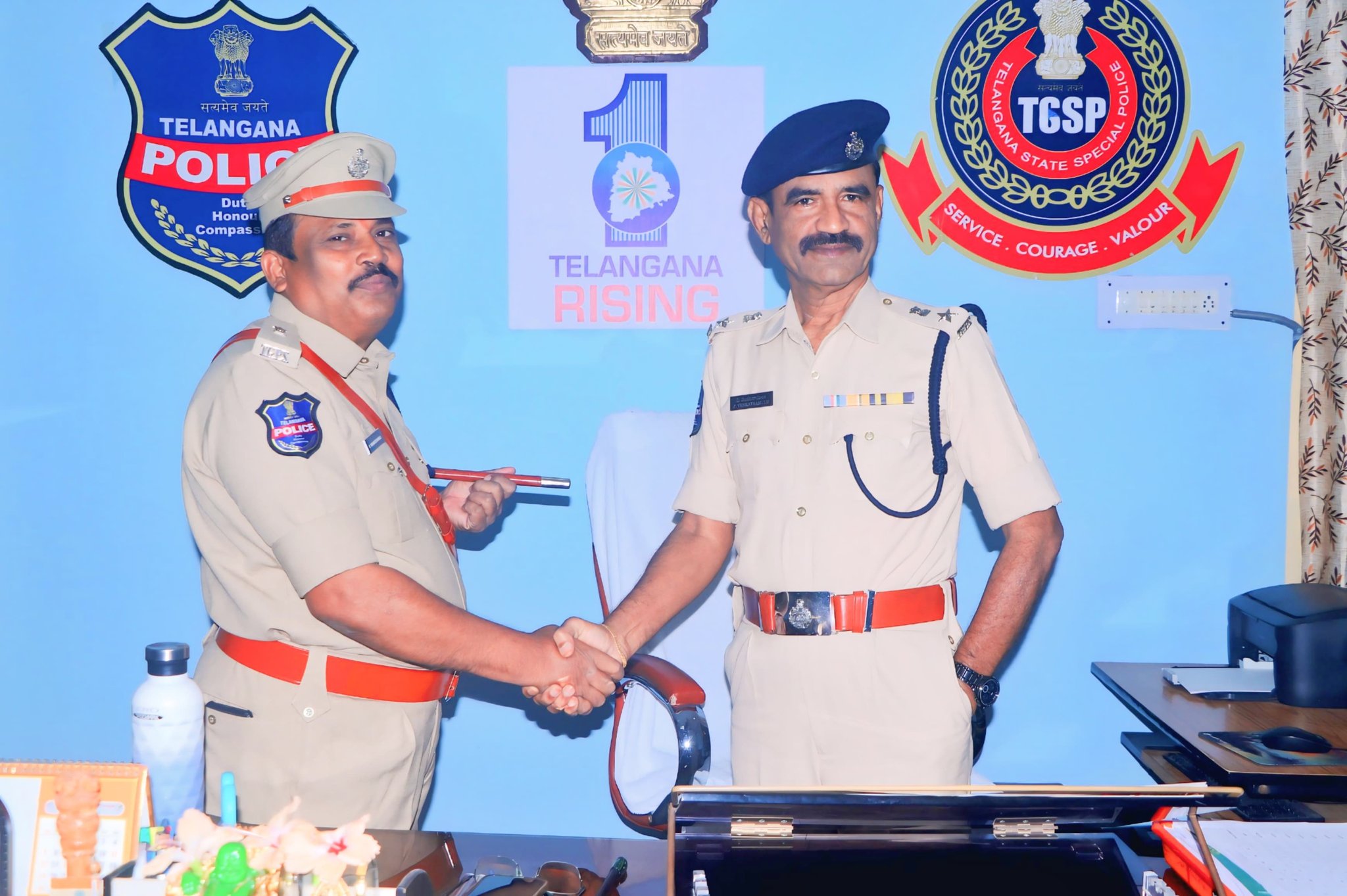 శ్రీ కే. వెంకటేశ్వర్లు పదోన్నతి పొంది అదనపు కమాండెంట్గా 13వ బెటాలియన్ తెలంగాణ స్పెషల్ పోలీస్ (TGSP) కు నియమితులయ్యారు. ఈ సందర్భంగా ఆయన నేడు విధులు స్వీకరించి అధికారికంగా బాధ్యతలు చేపట్టారు. అనంతరం యూనిట్ కమాండెంట్ శ్రీ పి. వెంకట్ రాములు గారిని మర్యాదపూర్వకంగా కలిసి శుభాకాంక్షలు తెలిపారు.